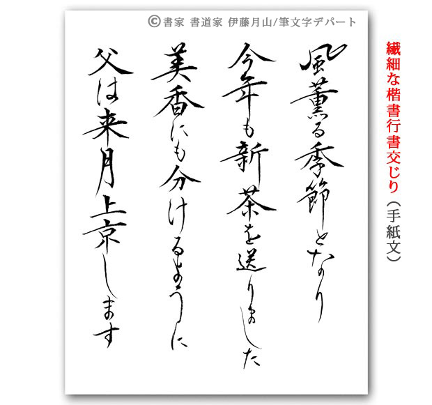 また漢字が楷書だけの場合、行書交じりと違ってやや硬さが表現されます。その硬さが真面目さにつながり、時によっては好感を持たれます。