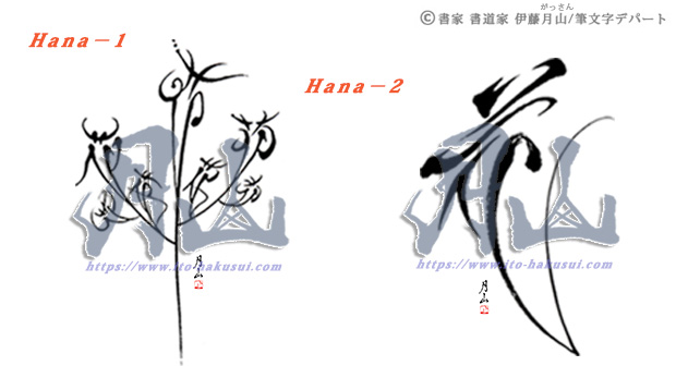 花には色々な種類があります。花を見ていると「花」をデザインした形があります。私のデザイン書道の原点は、自然から学ぶことが多いです。花に限らず、鳥・草・樹・・・等。私のデザイン書道の恩師は大自然です。書は芸術だと言います。それならば、書はこうあらねばならないという考えは無用だと思います。